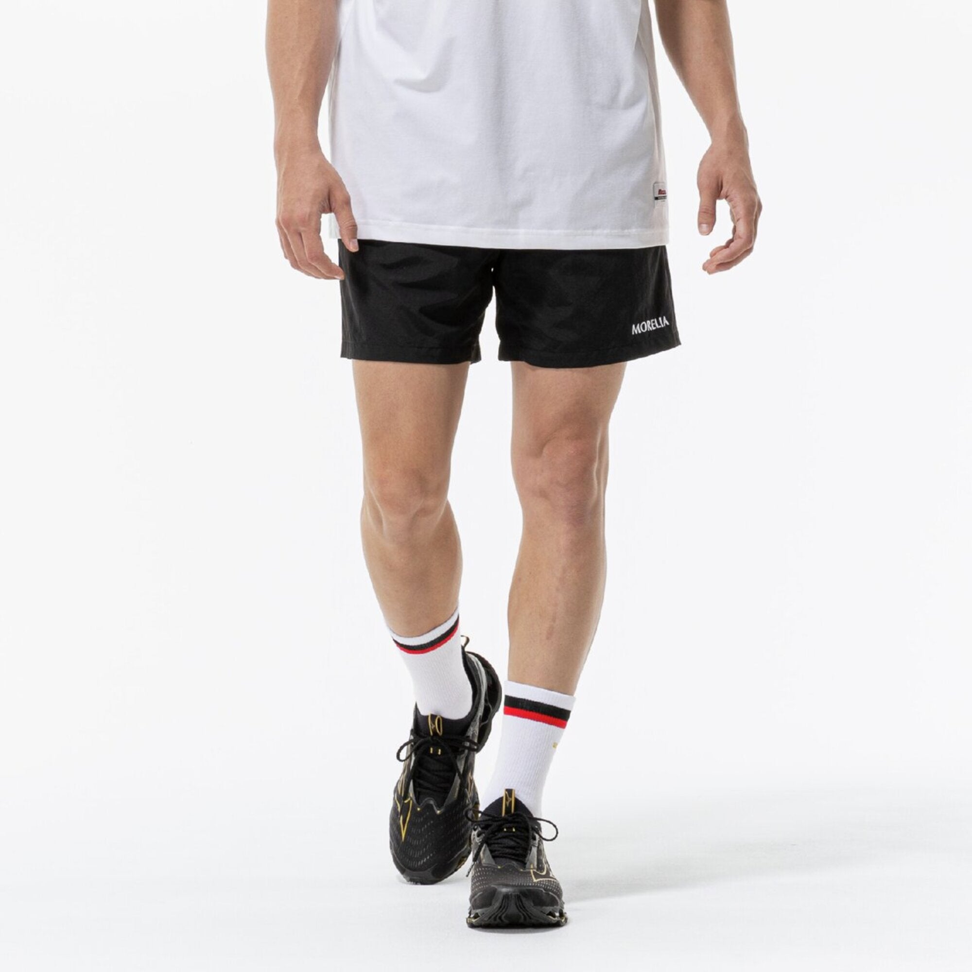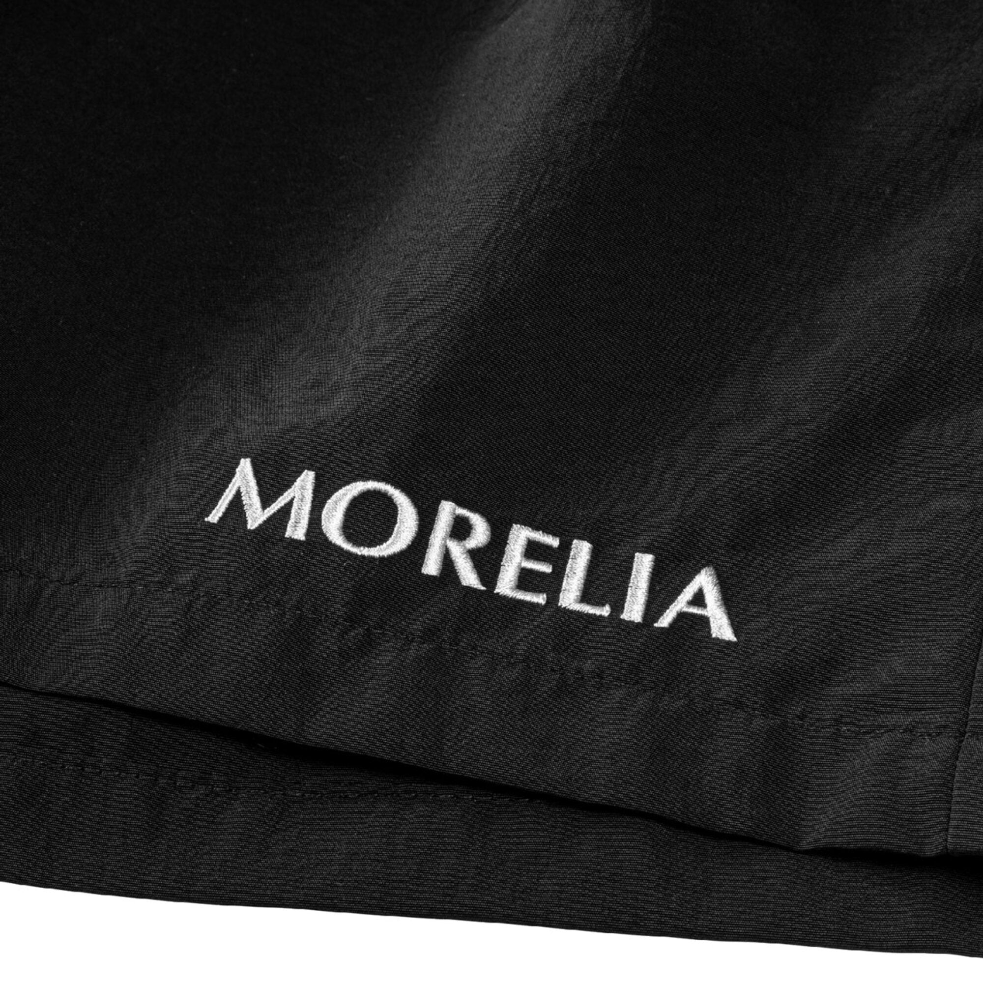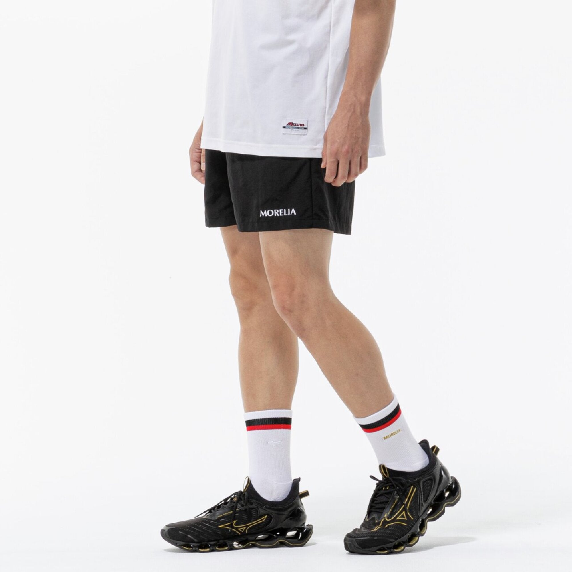 ・The Morelia logo is embroidered on the left hem, and a name tag that resembles the Morelia II shoe tongue is placed on the left side of the waist, creating an identity.