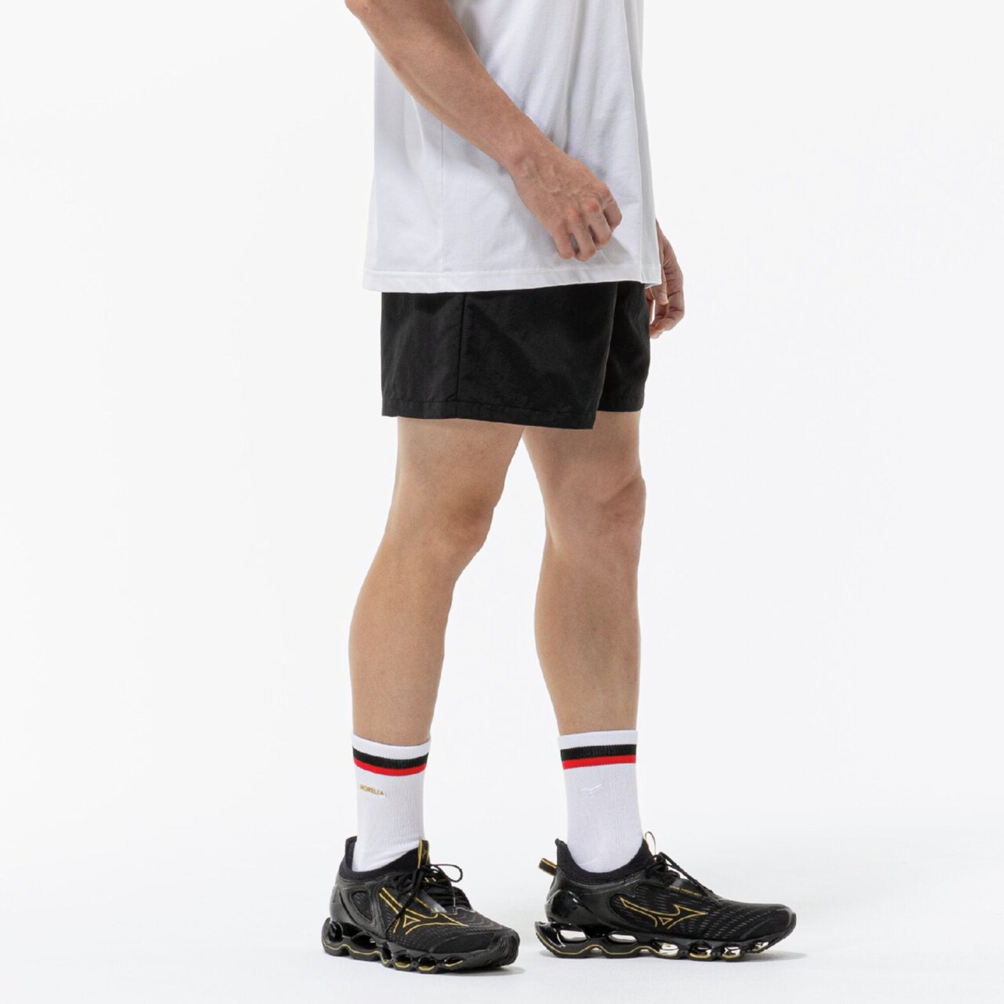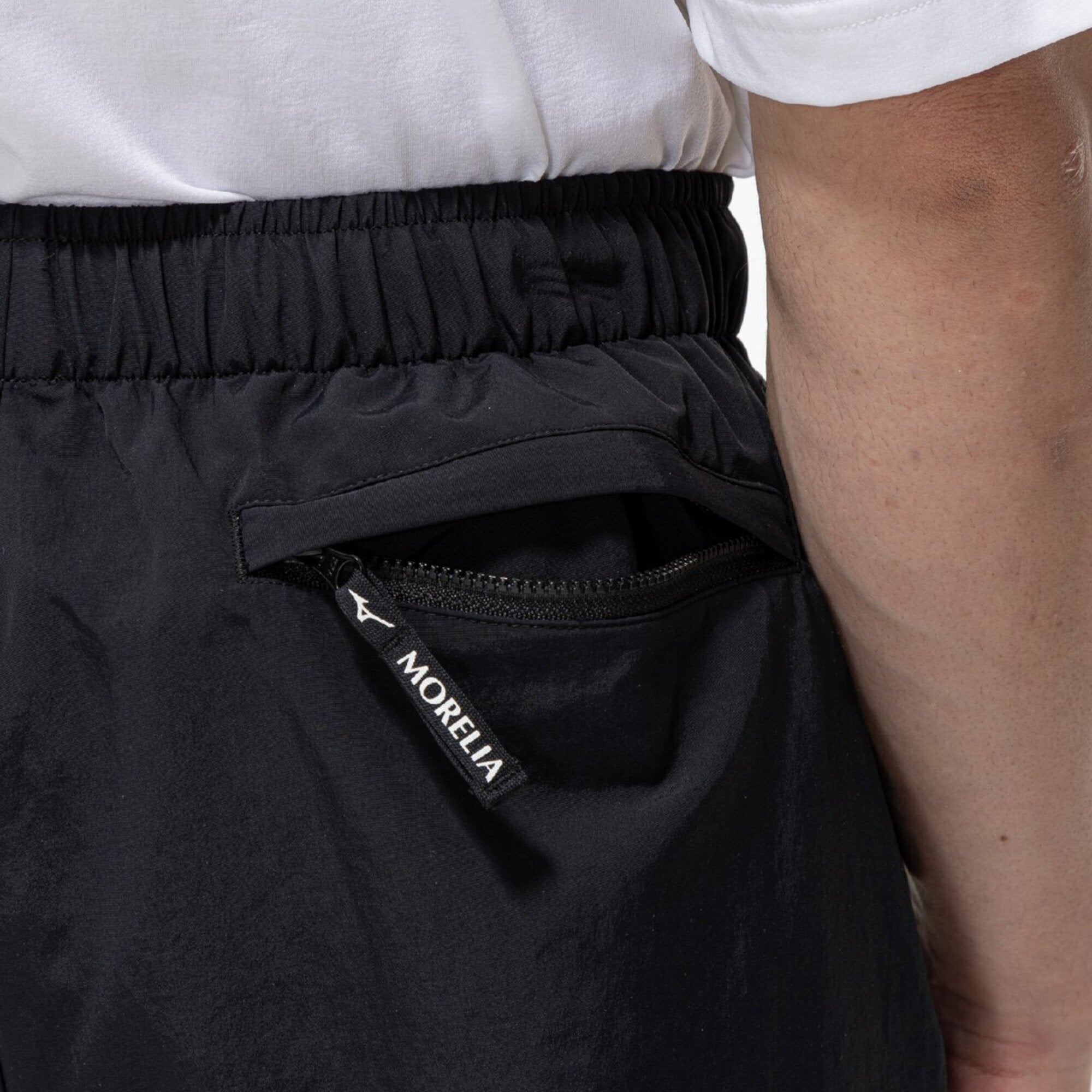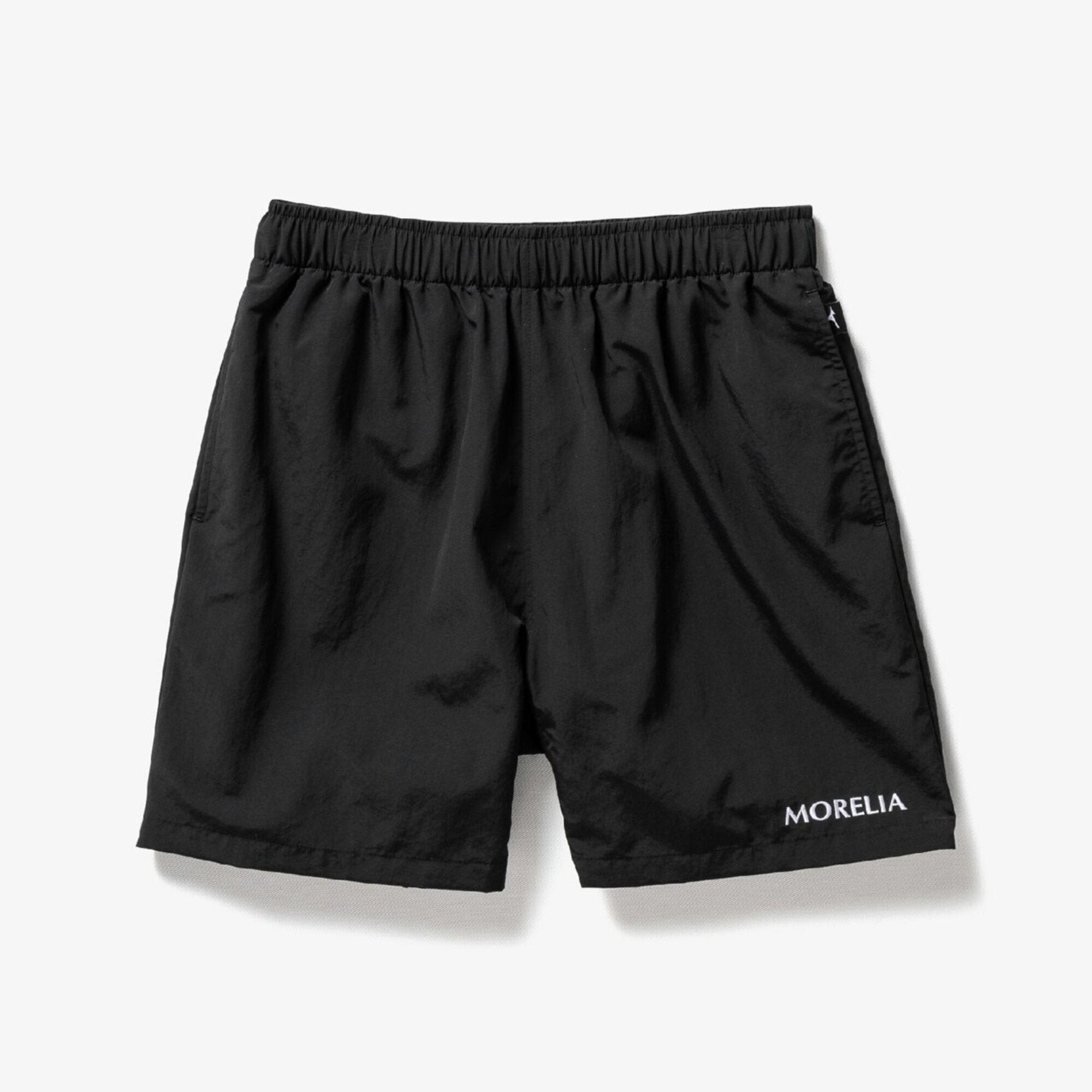 ・The Morelia logo is embroidered on the left hem, and a name tag that resembles the Morelia II shoe tongue is placed on the left side of the waist, creating an identity.