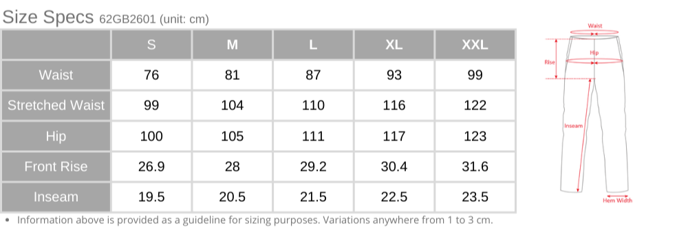 | XL | 44~47 | 113~119 | 39~41 | 99~105 | 73~75 | 185~191 |